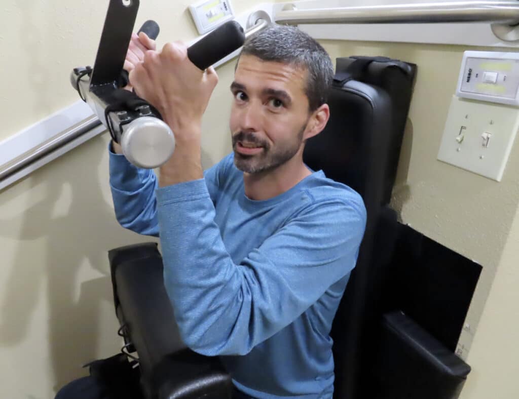“I have Ehlers-Danlos Syndrome and have been seeing the same trainer for 10 years.  He’s better than any physical therapist. He has helped me stay incredibly strong. His equipment is for Timed Static Contraction. It’s an exercise program where you do not  move your body or joints. You push, pull, press and the equipment measures your  strength. He has trained many people with disabilities and is excellent. His name is  Trace. It is crucial for us with EDS to keep our muscles super strong to make up for  hypermobility. Increasing your strength can also help with chronic pain. I attribute the  fact that I’m not in a wheelchair every day to my trainer.”